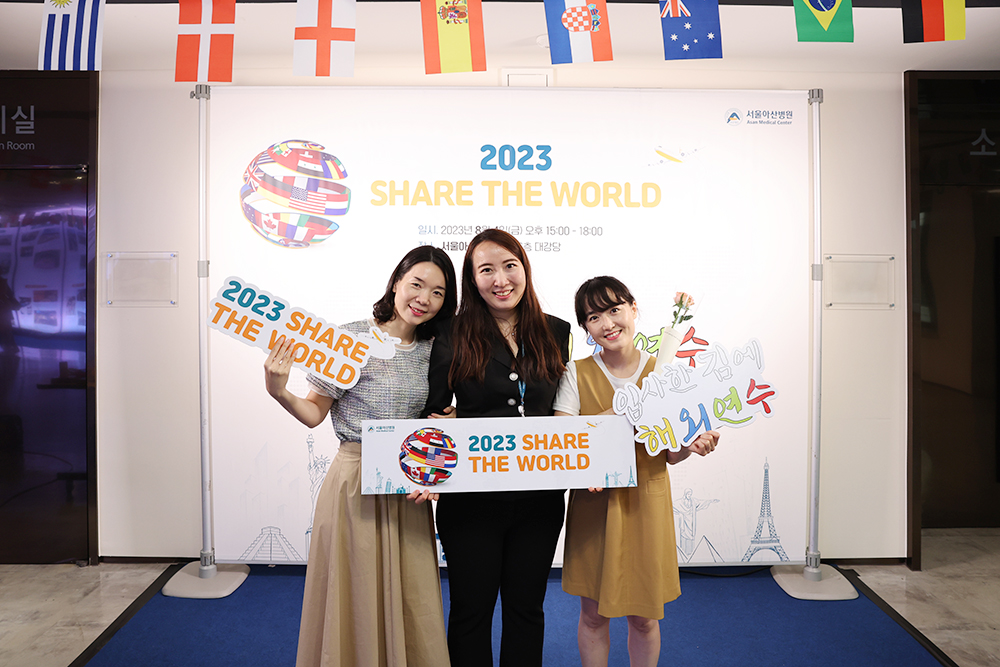 해외 선진 병원에서 연수를 받고 돌아온 직원들의 이야기를 들어보는 서울아산병원 해외연수보고회 'Share the World'가 8월 4일 개최됐다. 서울아산병원은 직원들의 전문성 향상과 교육 기회 확대를 위해 민병철 연수기금 등을 통해 해외연수를 적극 지원하고 있다. 올해 초 미국 스탠포드 대학병원에 다녀온 외과간호1팀 이가향 과장, 수술간호팀 김혜진 대리, 중환자간호팀 조보슬 주임을 만나 해외연수 이야기를 들어보았다.